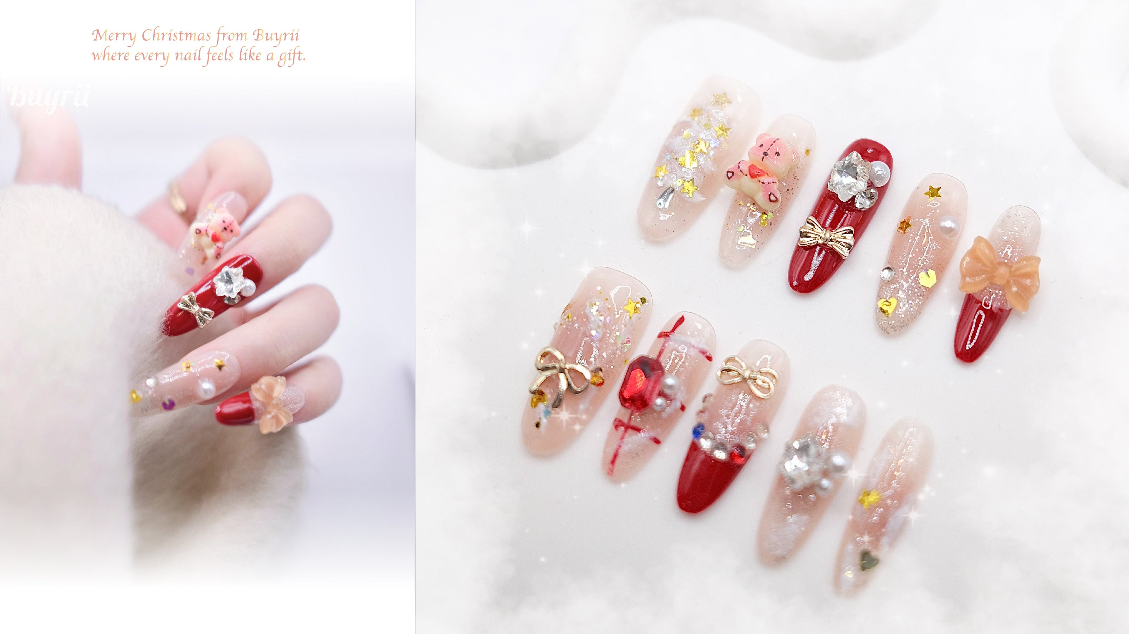 Mid-Long Coffin Colorful Shiny Star Press On Nails