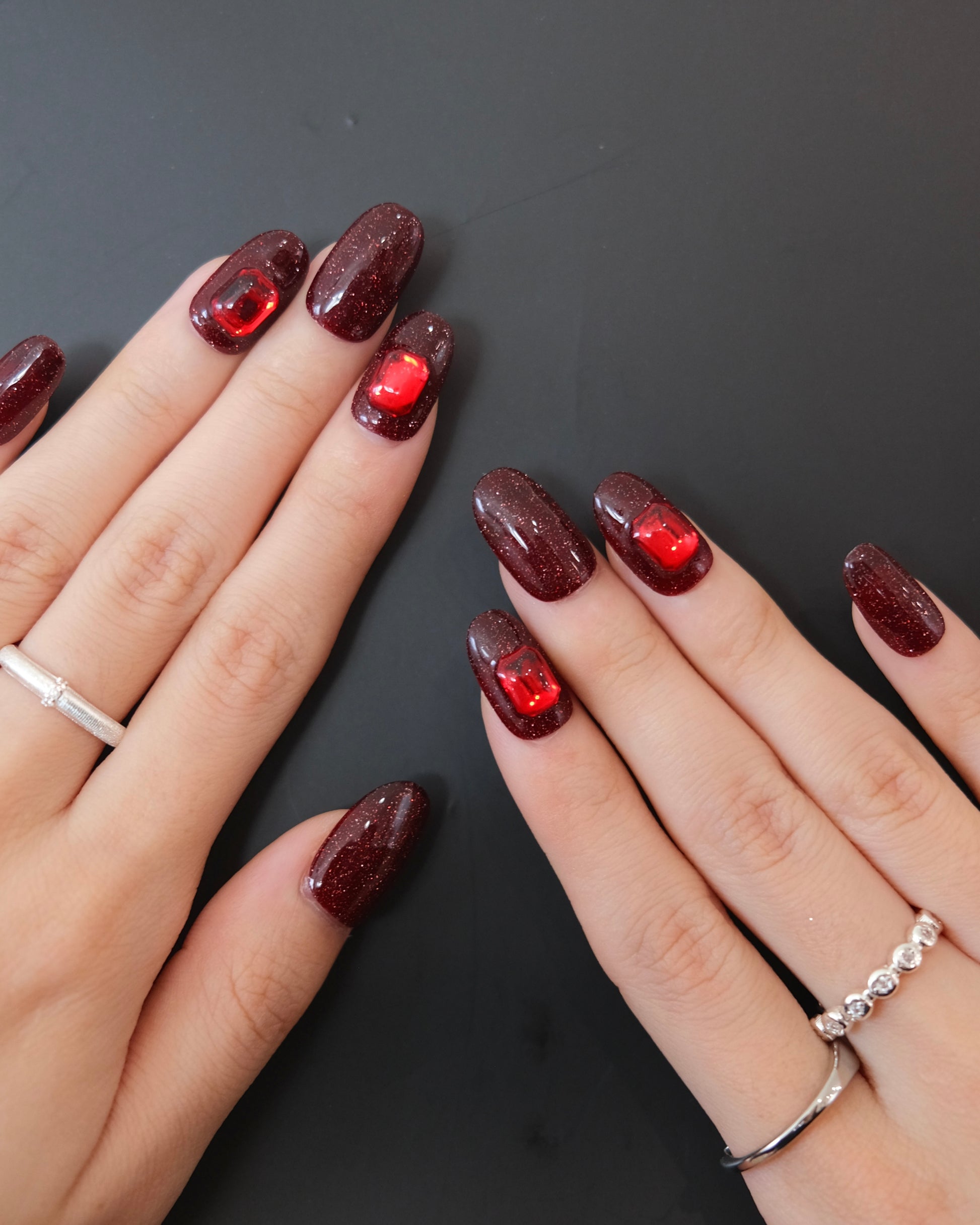 BUYRII X H² Short Oval Square Ruby Shiny Memory Press On Nails