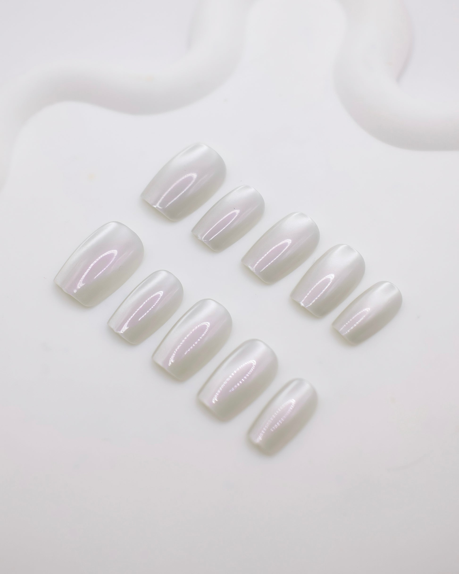 Short Coffin Cateye Pearl White Press On Nails