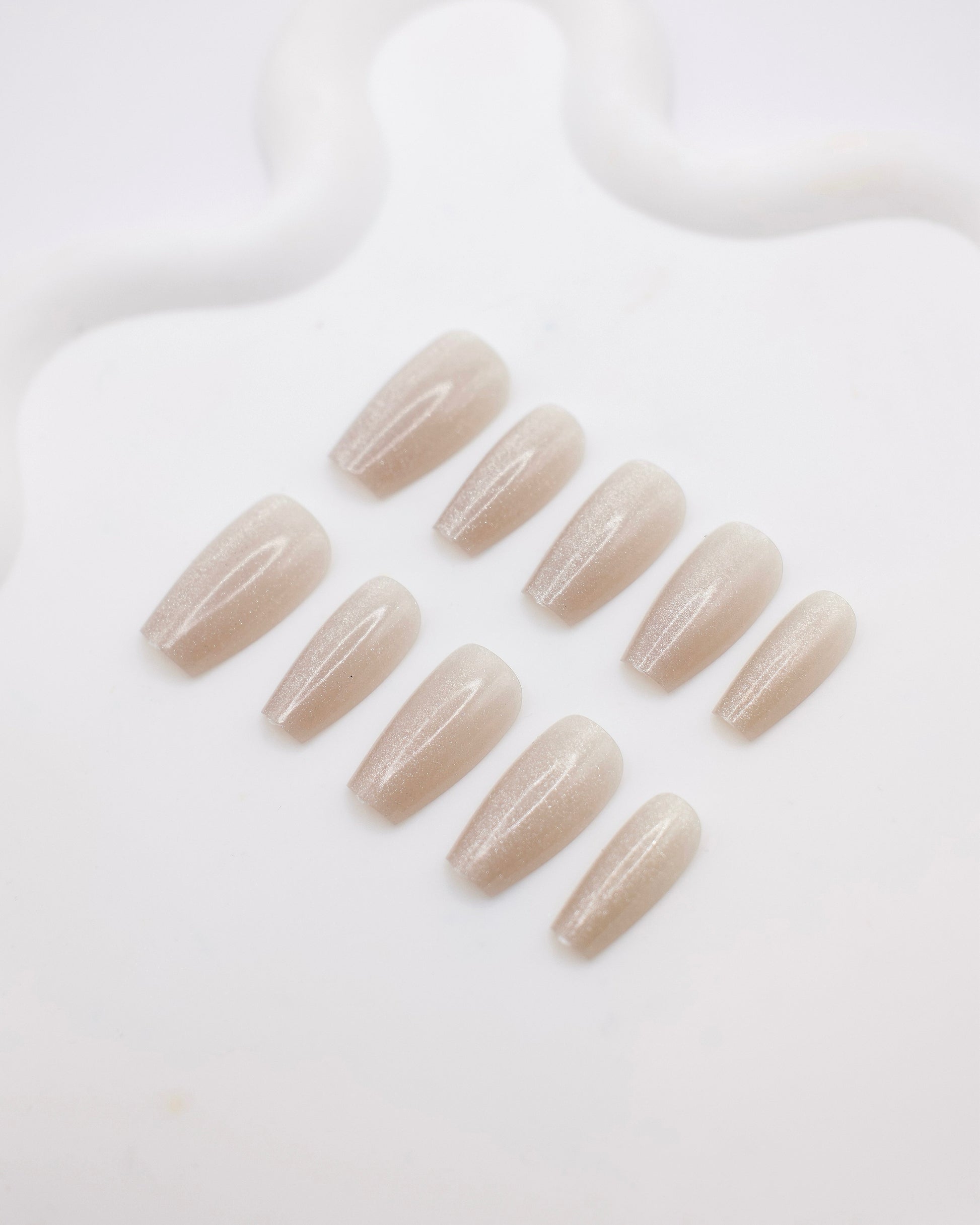 Mid-Long Coffin Cateye Nude Color Press On Nails