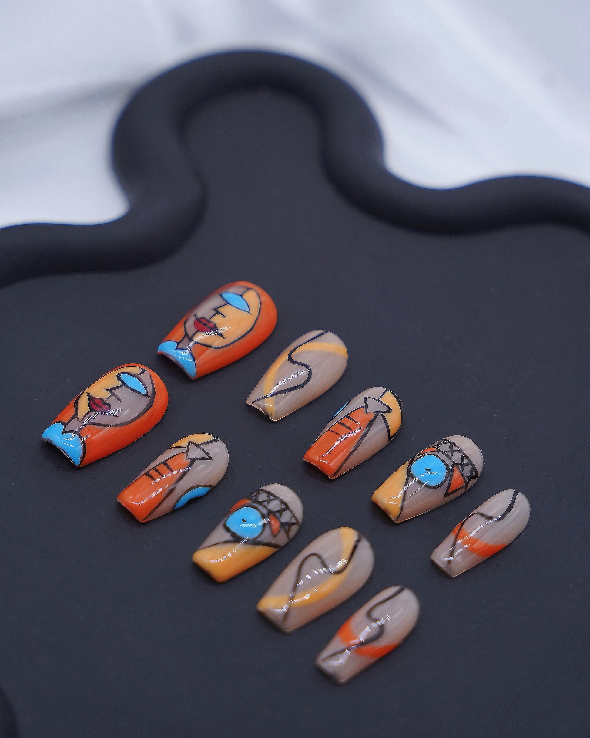 Mid-Long Coffin Colorful Abstract Painting Press On Nails