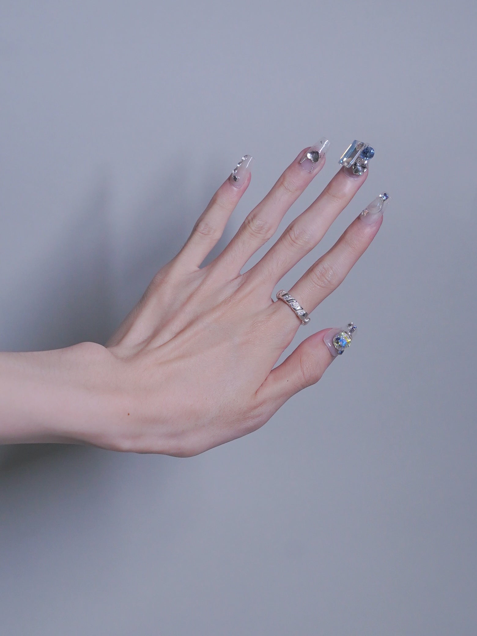 Mid-Long Coffin White Shine On Crazy Diamond Press On Nails