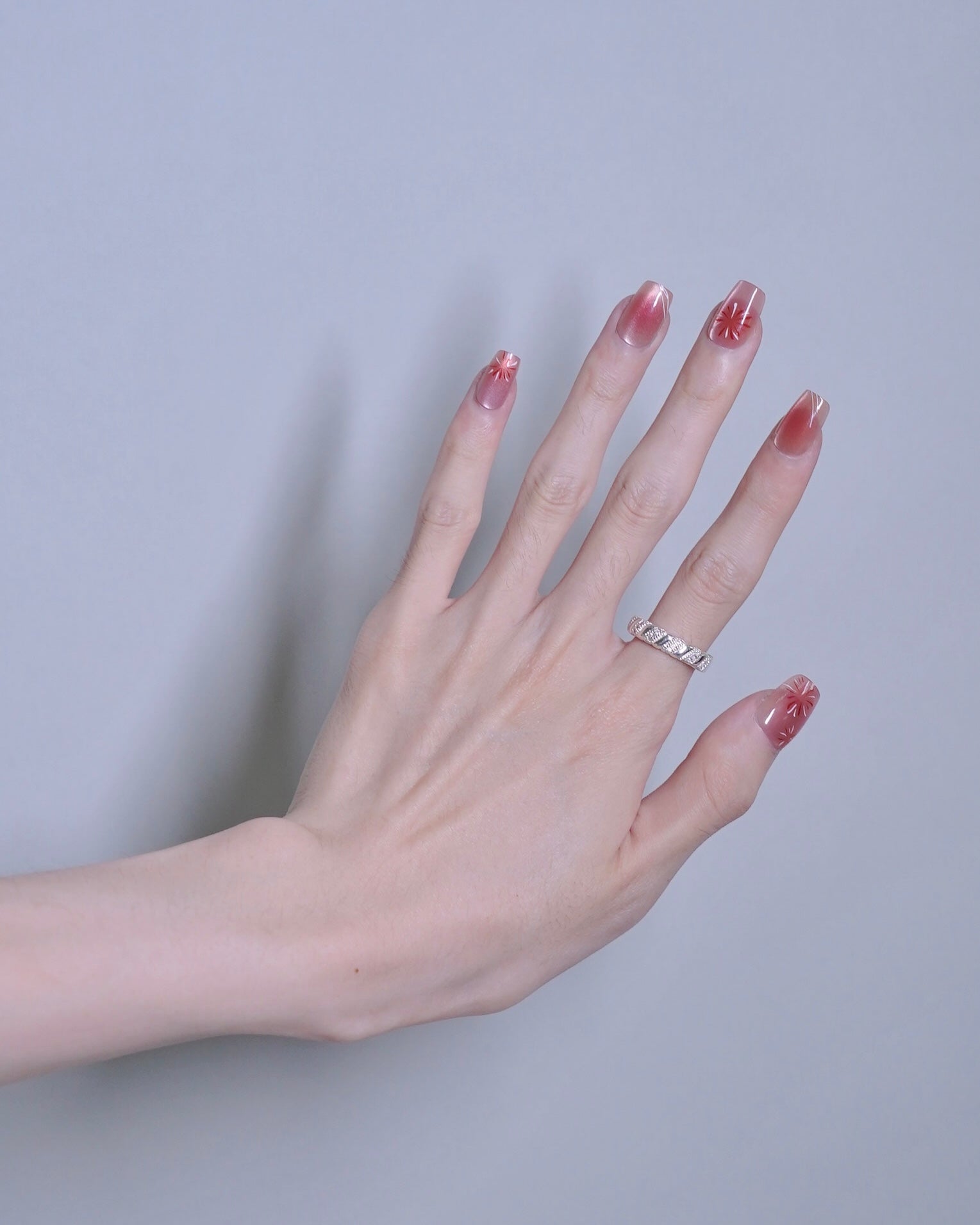 Short Coffin Cateye Pink Firework Press On Nails