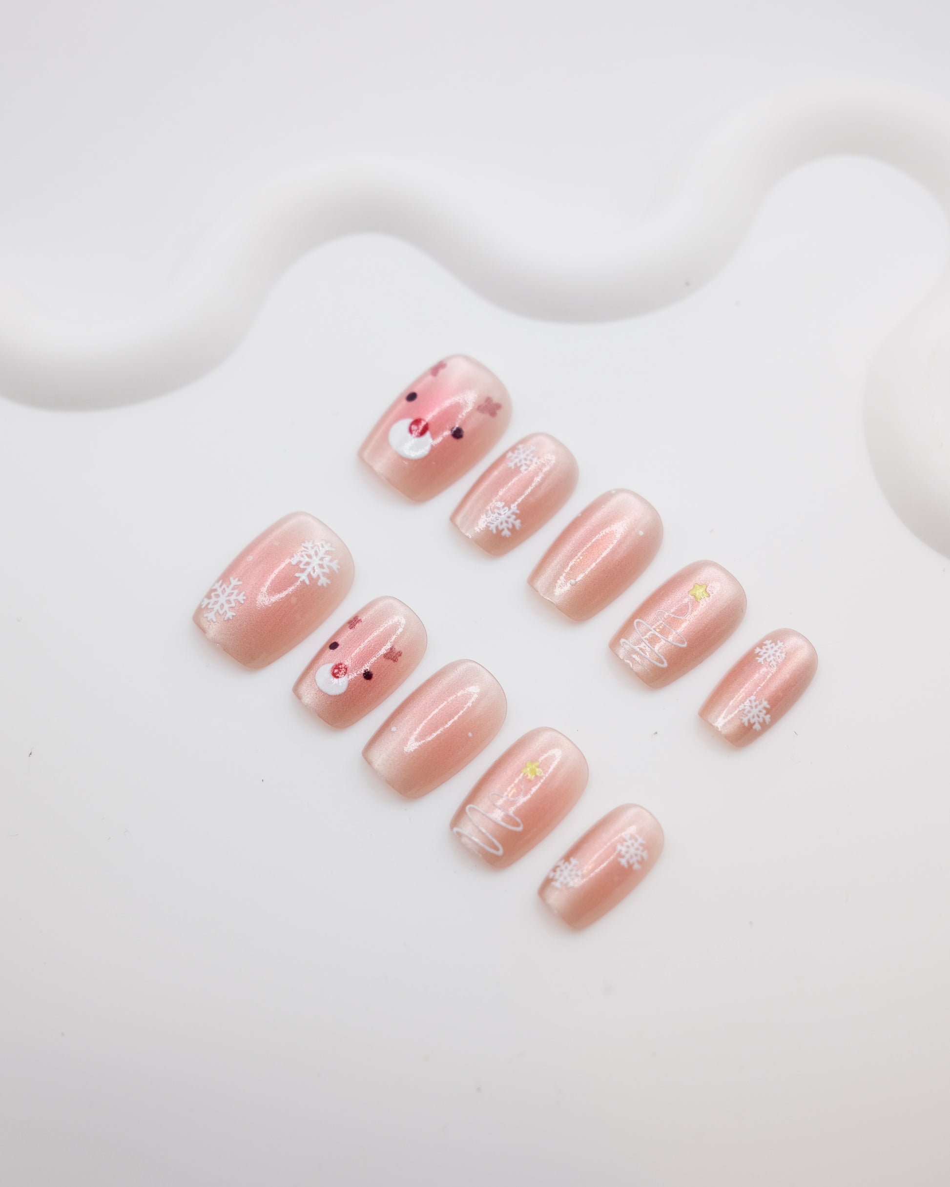 Short Coffin Pink Cateye Cute Elk Press On Nails