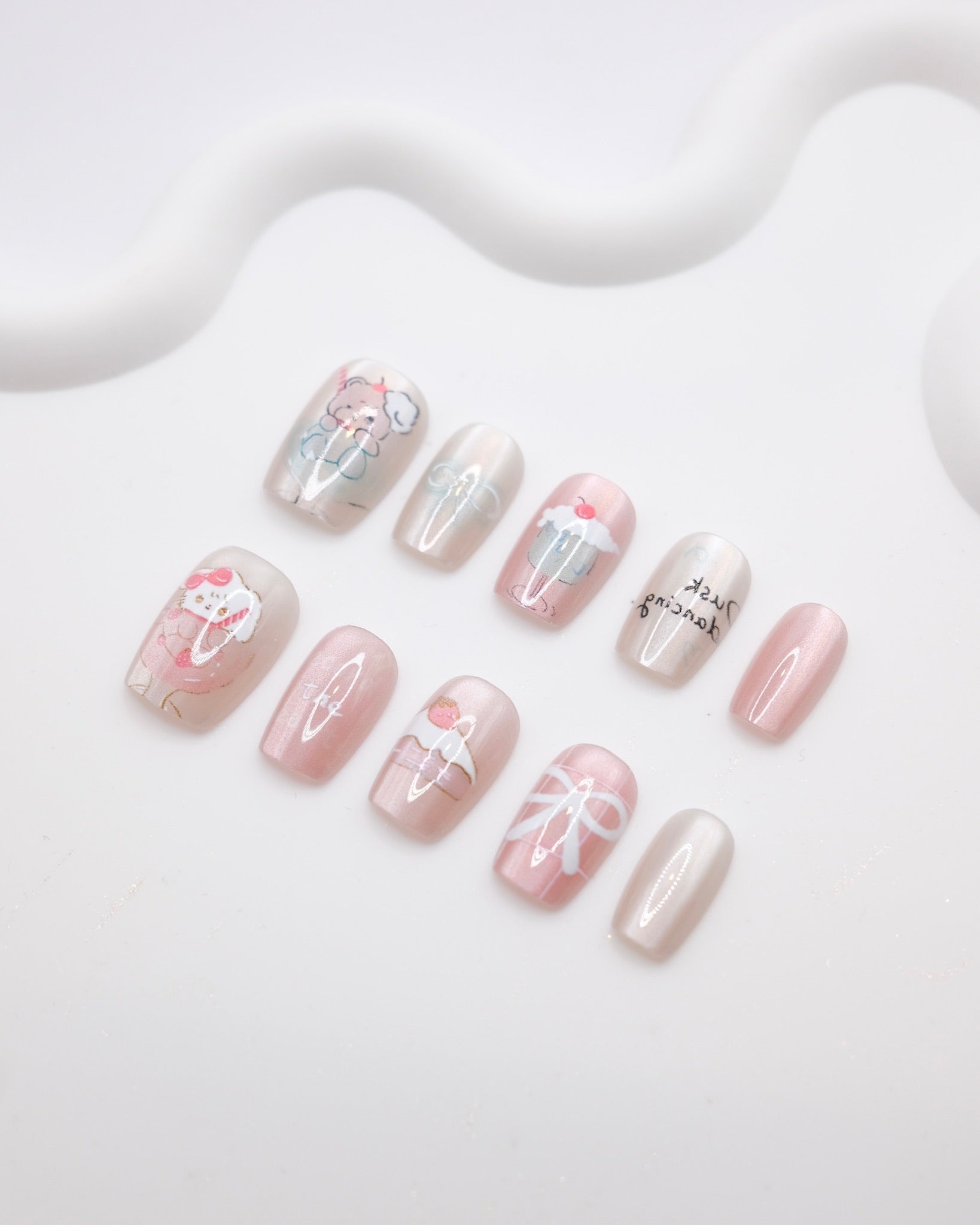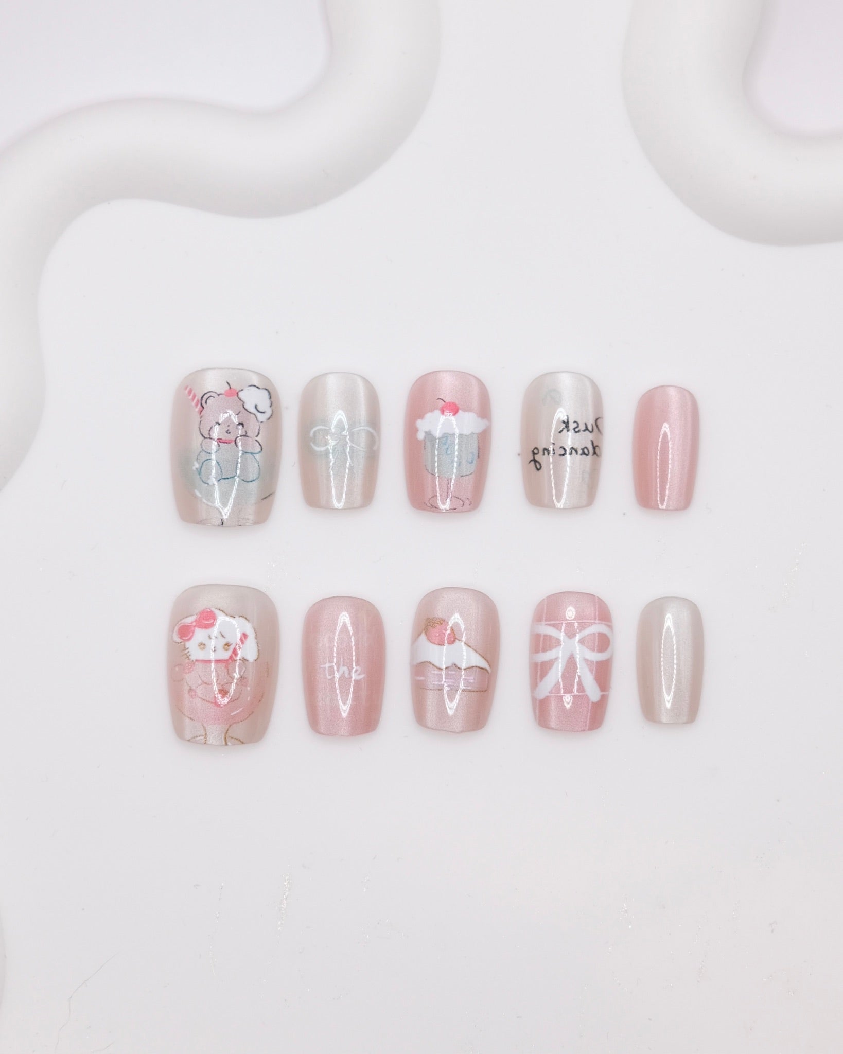 Short Coffin Pink Cupcake Bear Press On Nails