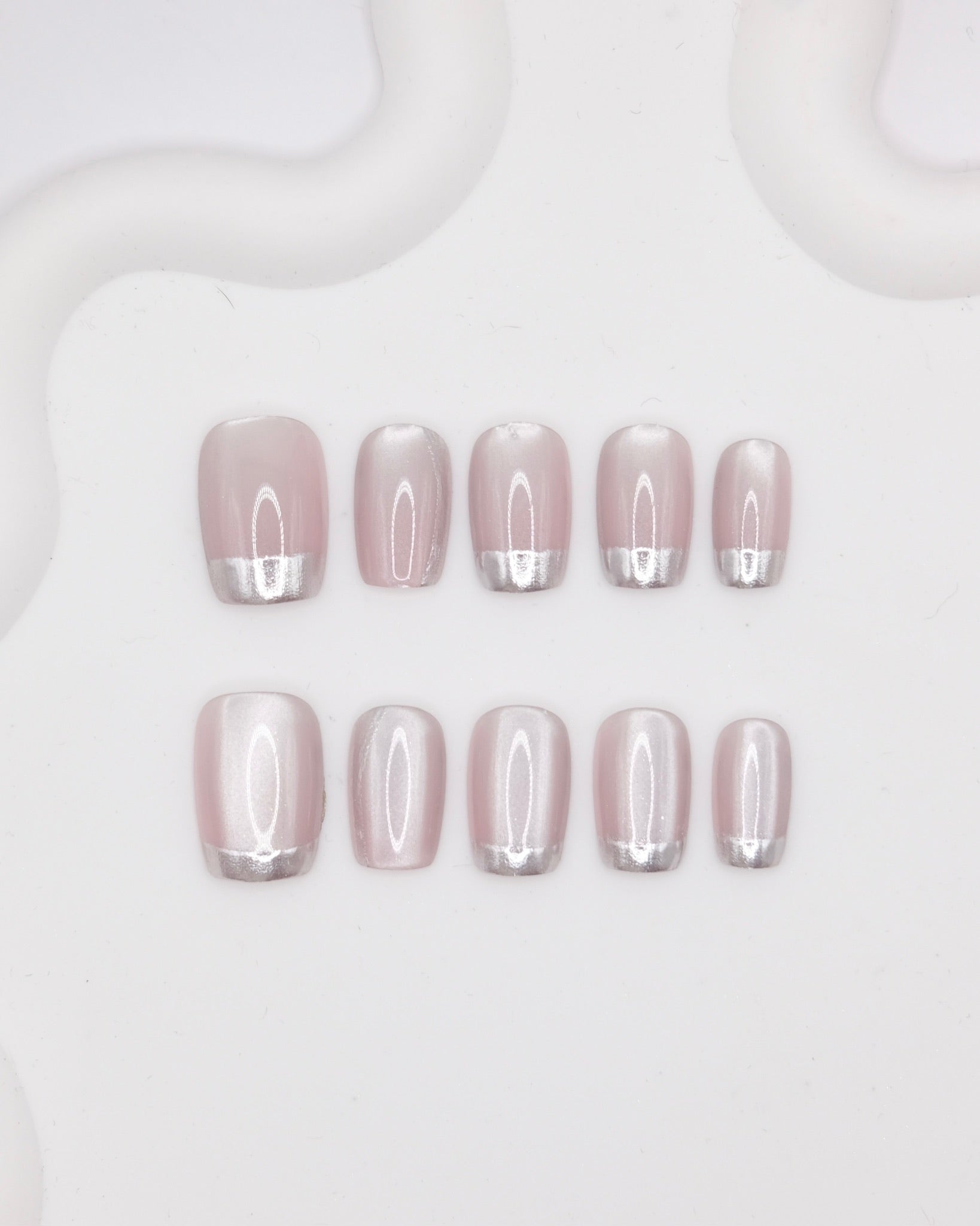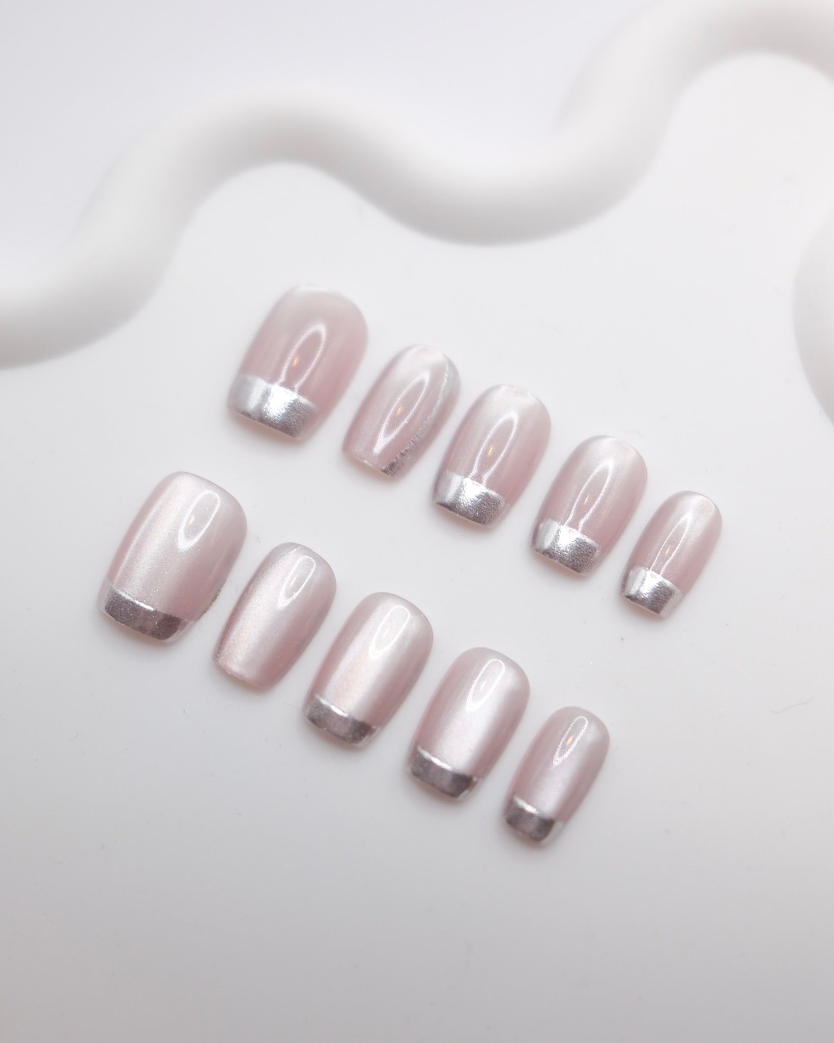 Short Coffin Purple Cateye & French Manicure Press On Nails
