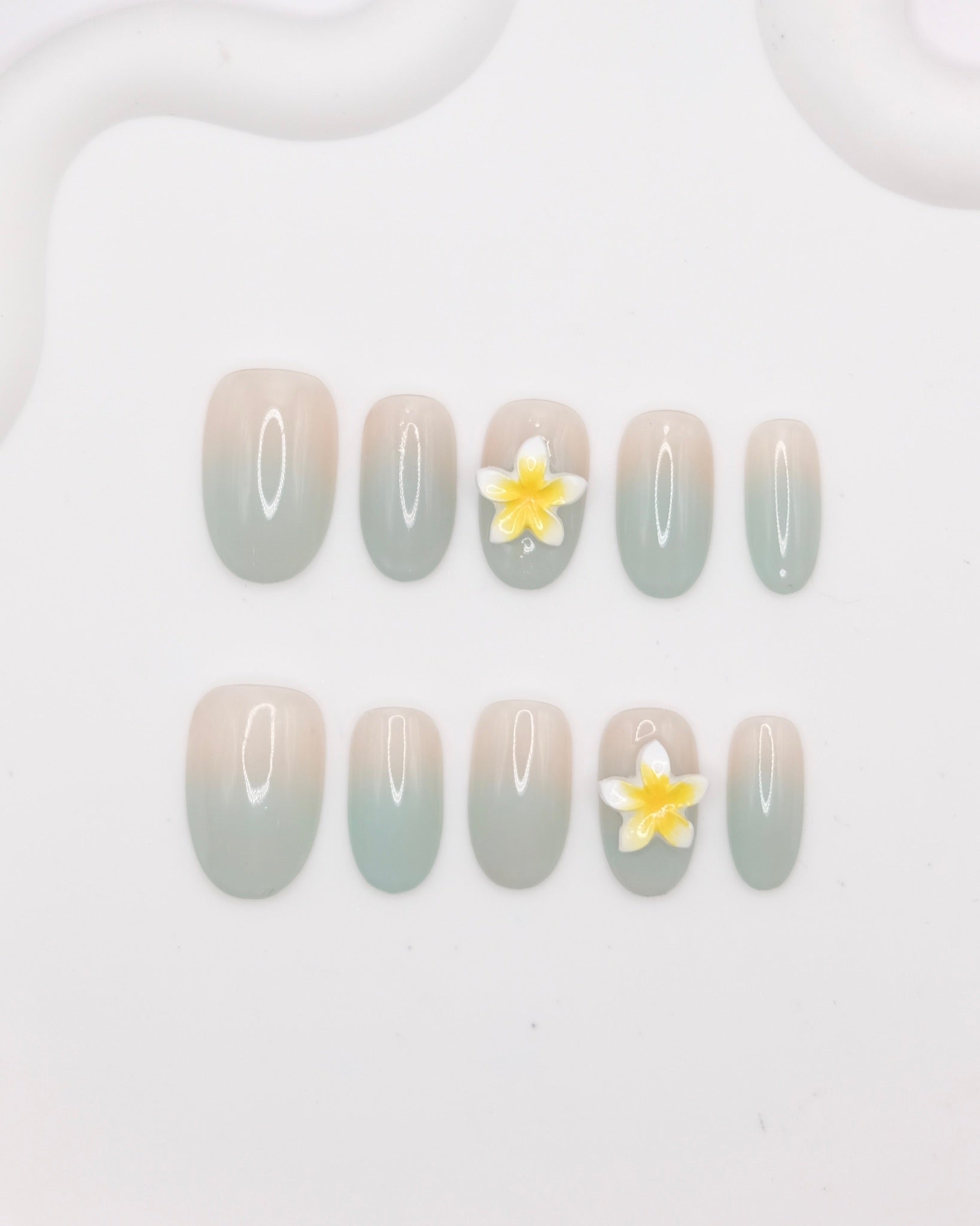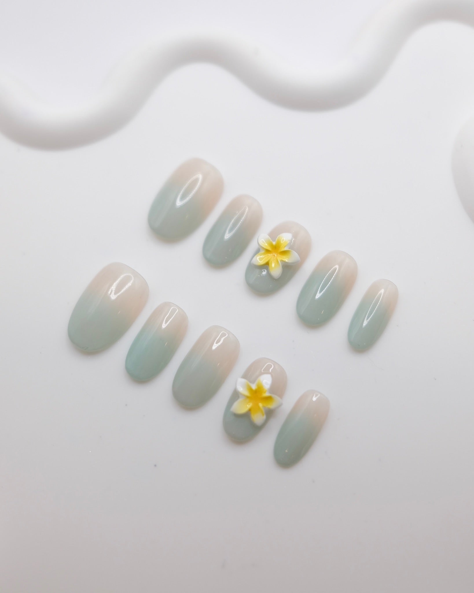 Short Oval Light Blue Gradient Hawaii Press On Nails