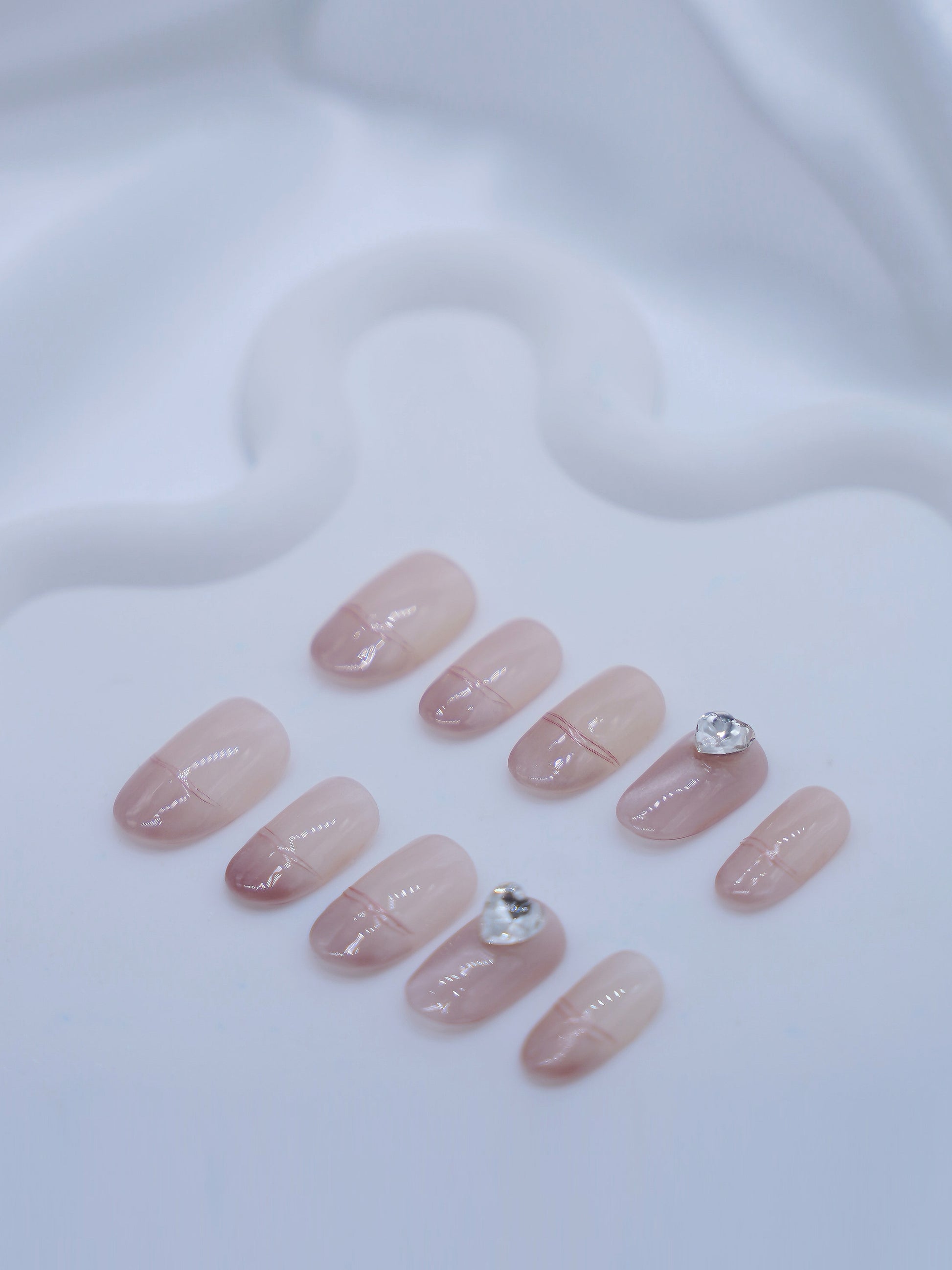 Short Oval Pink & Love Heart Diamond Press On Nails